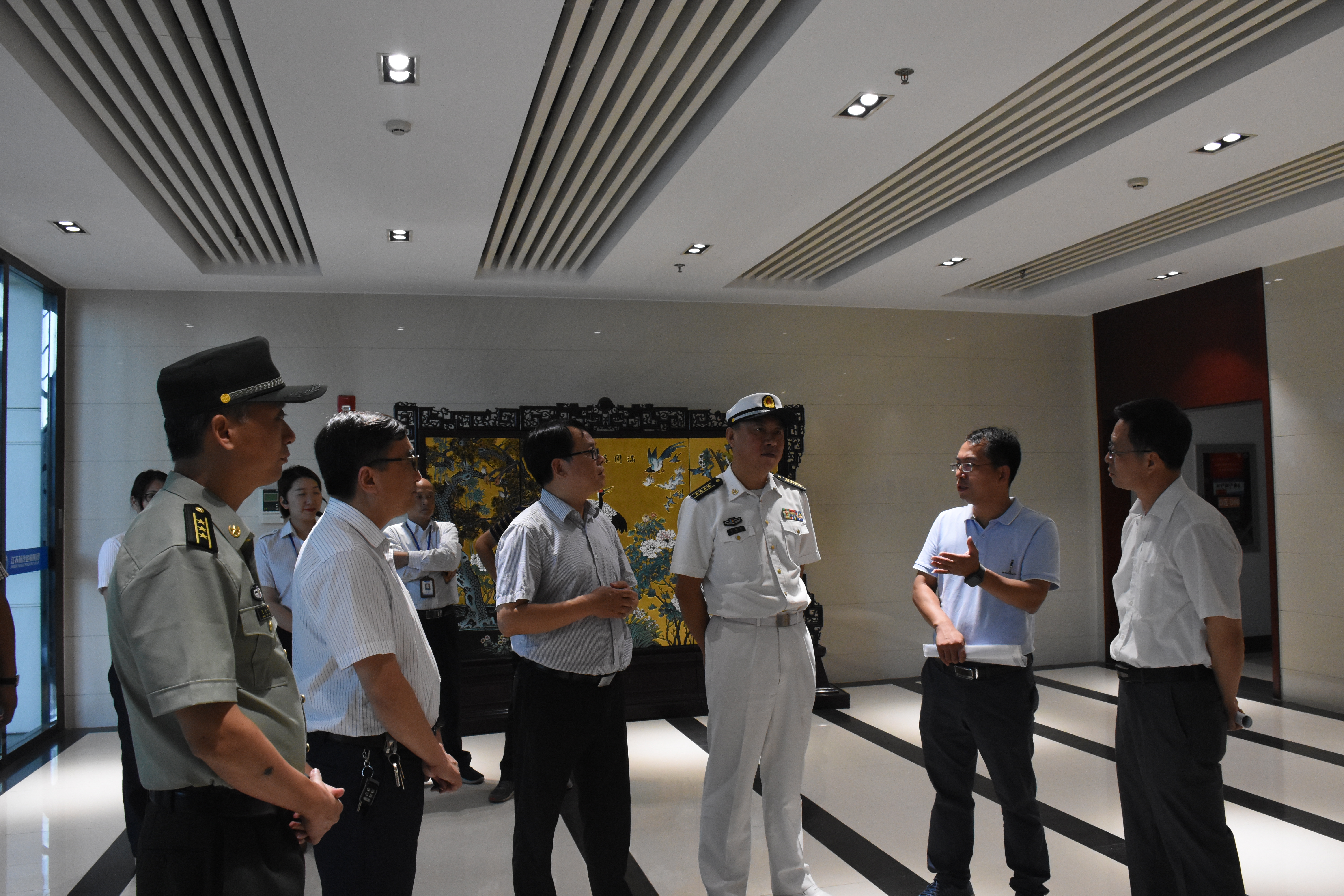 為扎實(shí)推進(jìn)揚(yáng)州市八創(chuàng)“全國(guó)雙擁模范城”工作,2019年9月23日,揚(yáng)州軍分區(qū)司令員劉朝輝、市退役軍人事務(wù)局局長(zhǎng)孫玉金蒞臨揚(yáng)州汽車(chē)客運(yùn)站調(diào)研,市交通產(chǎn)業(yè)集團(tuán)副總經(jīng)理、揚(yáng)汽集團(tuán)董事長(zhǎng)、黨委書(shū)記龔宇峰,揚(yáng)汽集團(tuán)黨委副書(shū)記顧懷,市交通局“八創(chuàng)”工作具體負(fù)責(zé)人印飛等陪同調(diào)研。