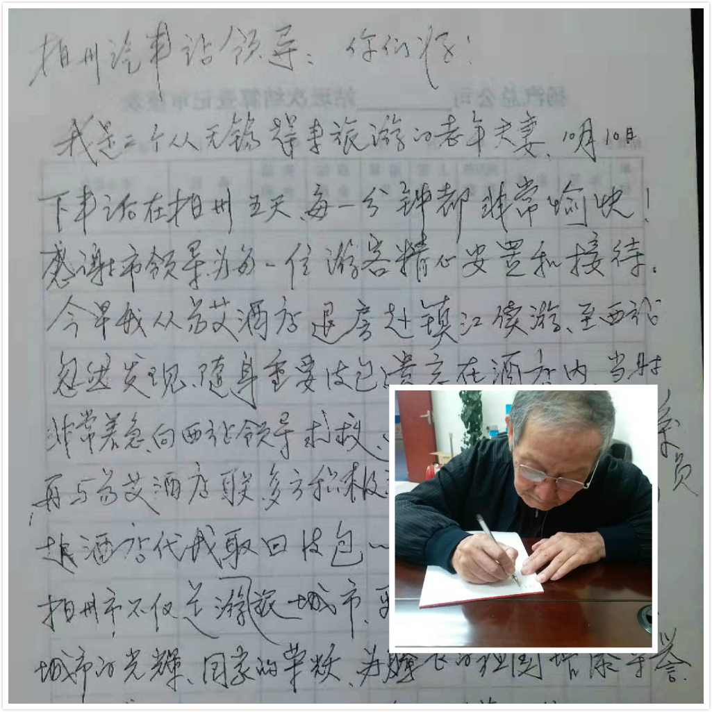 八旬老人寫下文字感謝揚(yáng)州站工作人員