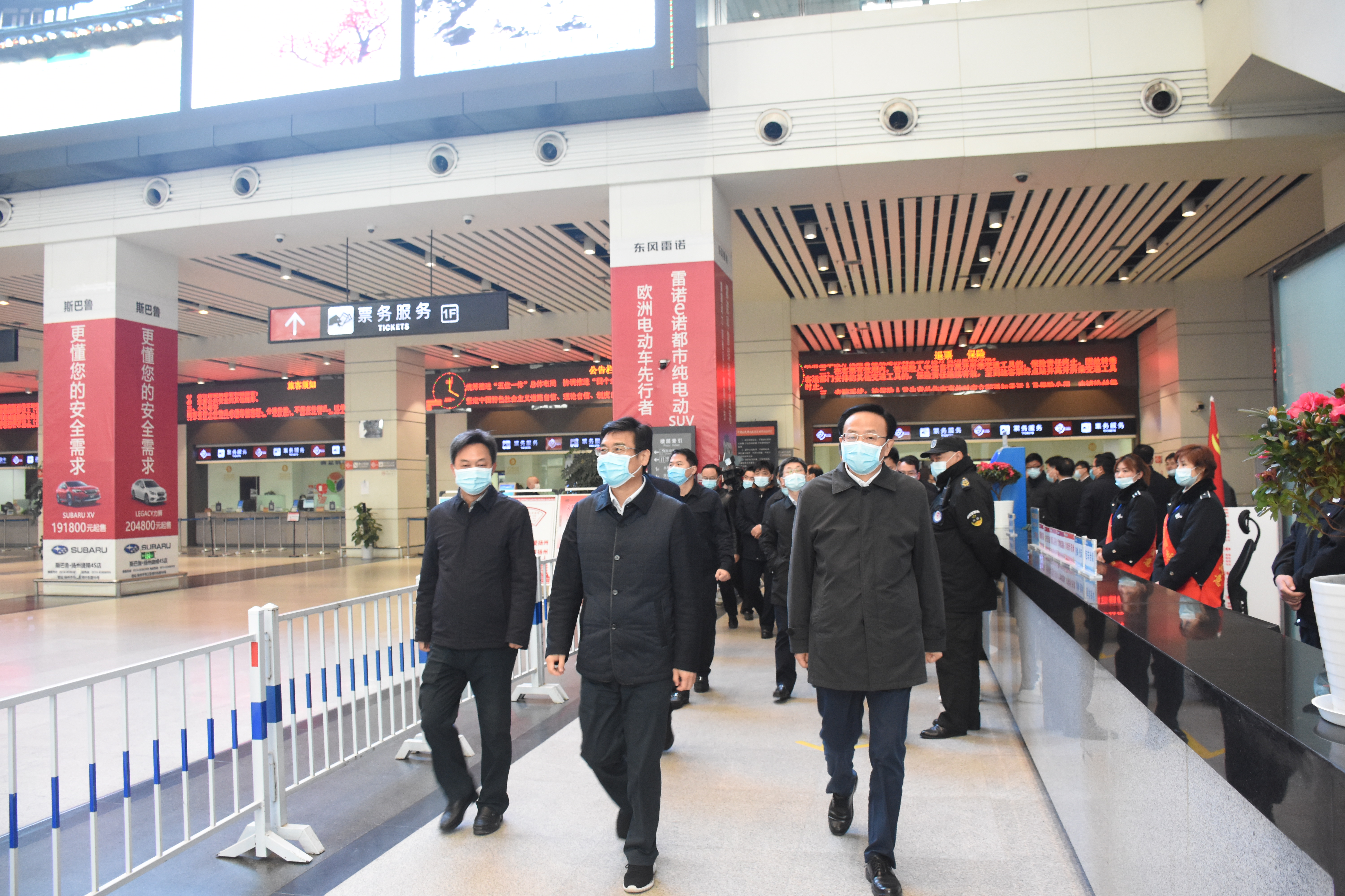 林省長一行來到西部樞紐客運(yùn)站,沿車站東廣場(chǎng)中軸線一路前行,先后視察了售票大廳、旅客到達(dá)中心、公交換乘等場(chǎng)所,聽取車站管理情況的介紹,了解西部樞紐客運(yùn)站現(xiàn)階段運(yùn)營質(zhì)態(tài)。