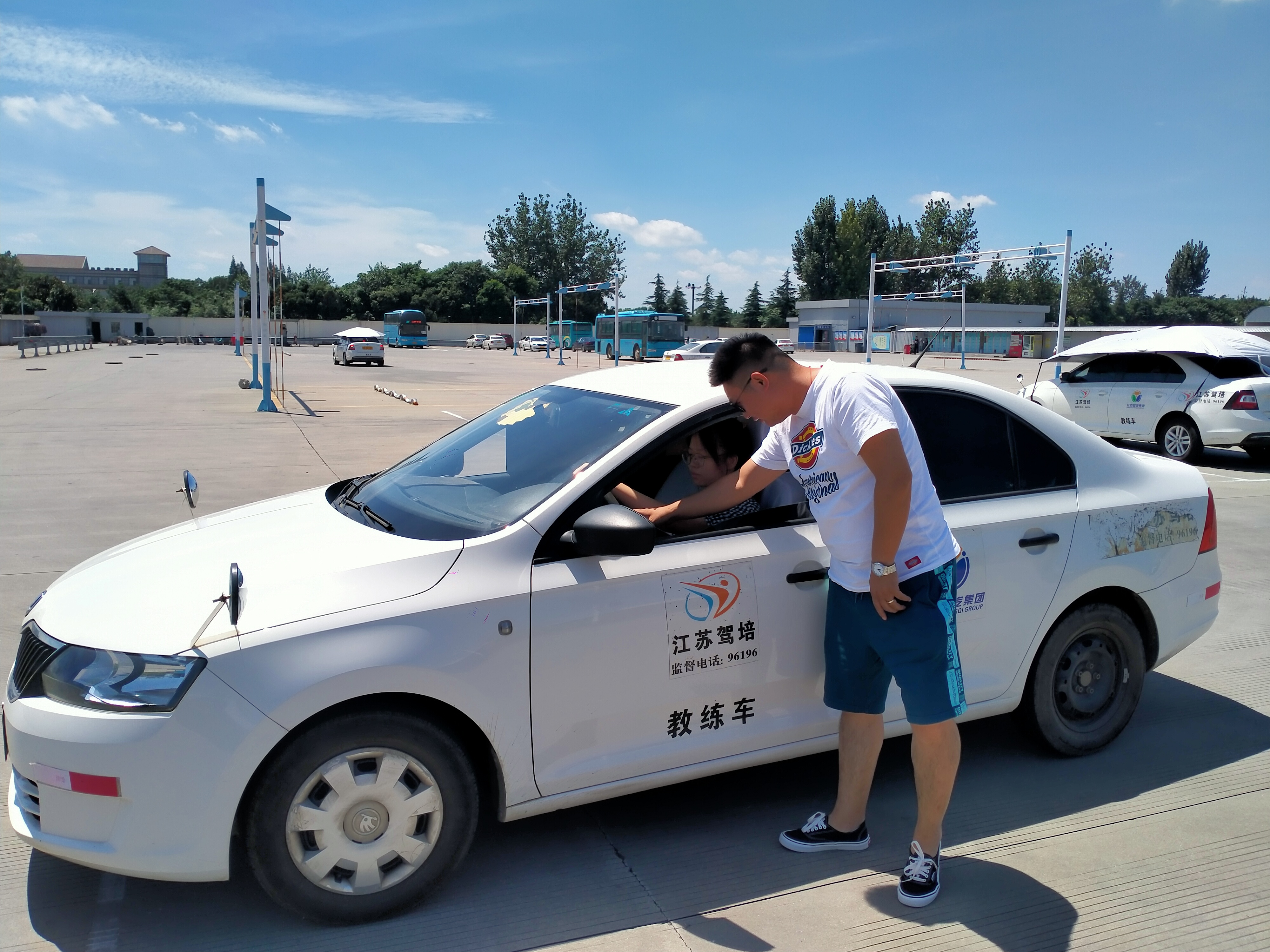 夏天教學(xué)是對(duì)教練員意志力、身體的雙重考驗(yàn)。為了保證訓(xùn)練安全,教學(xué)過(guò)程中教練員在車外指導(dǎo)學(xué)員從而導(dǎo)致車窗不能關(guān),空調(diào)開著也就失去了效果。這樣的高溫下,沒(méi)有人愿意待在車?yán),學(xué)員都是練習(xí)完下車找地方乘涼。開車的人都知道,待在炎熱的車廂內(nèi)是多么的煎熬,但是由于職責(zé)所在,我們的教練員都必須時(shí)刻保持高度警惕,寸步不離地堅(jiān)守在自己的崗位上。
